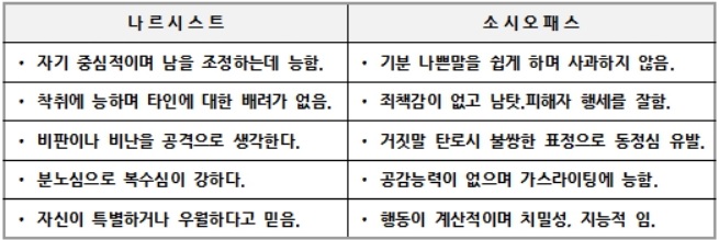 타인에 대한 공감 능력 부족 등의 특징을 보입니다.